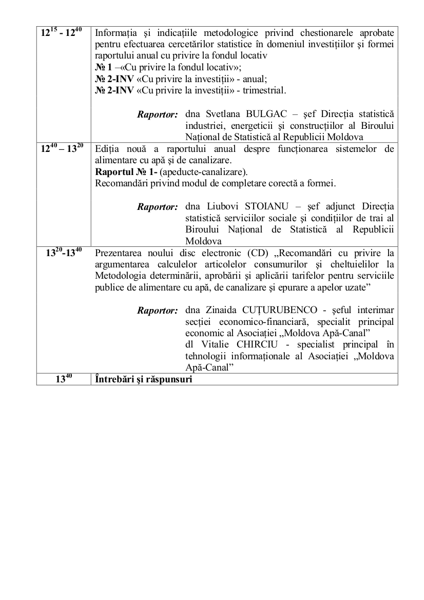 Dl. Iurie MOCANU – şef Direcţia infrastructură statistică al Biroului Naţional |