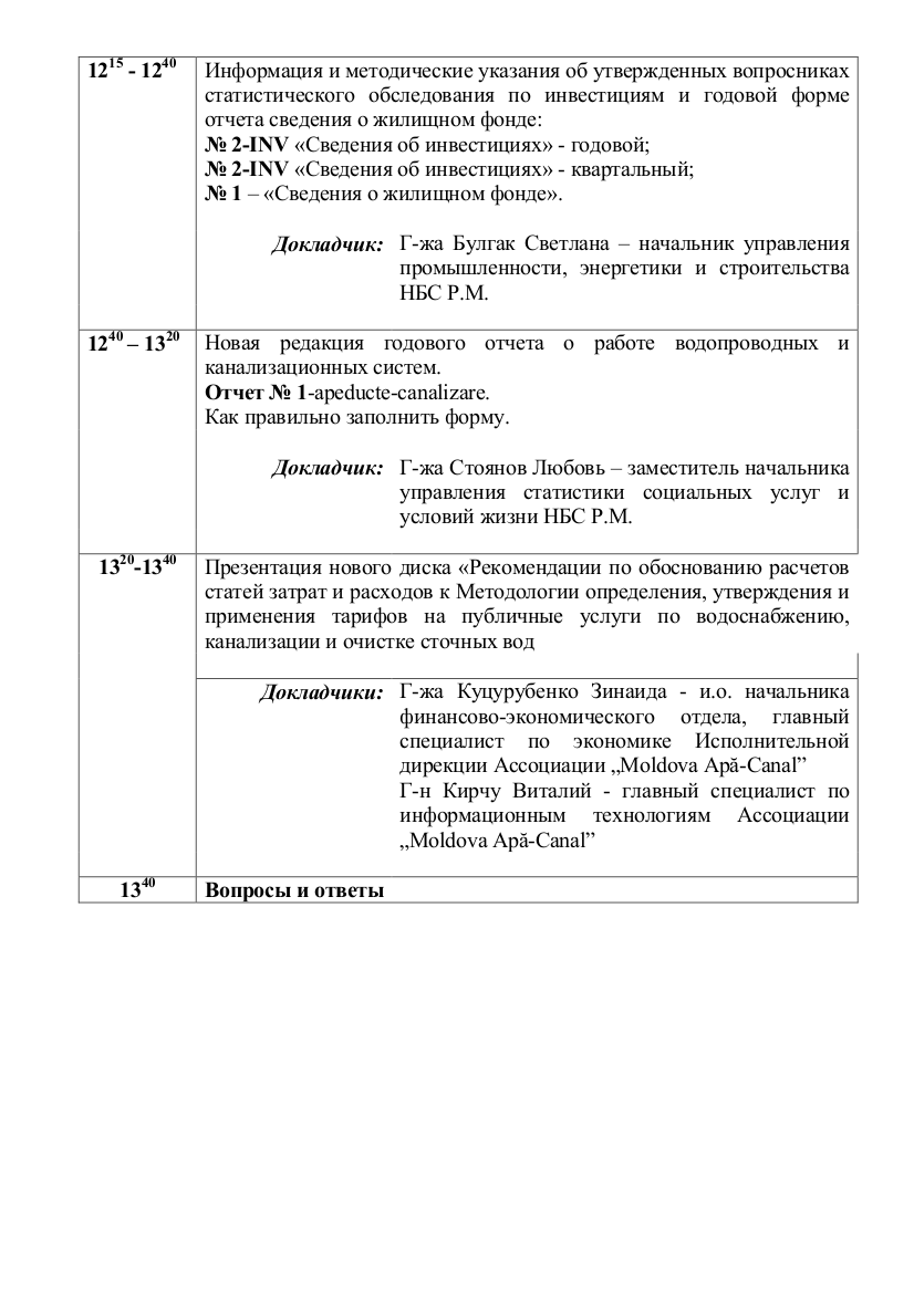 Г-н Мокану Юрий – Начальник управления статистической |